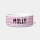 Modern, geometric grid pattern customizable pet bowl in a girly pink. This bowl is a super cute accessory for your pet or an Ideal gift for the pet owner in your life, Personalized with names in a pink colour way and matching accessories are available.