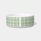 Modern geometric monochrome grid pattern girly sage green customisable pet bowl, cute accessory. Ideal gift for the pet owner in your life, personalised with names in a sage green colour way
