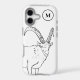 Minimalist Monogram initial with cute mountain goat, a simple black and white line drawing ideal for animal lovers. This adorable farm animal illustration was hand drawn in modern minimalist style by artist Catherine Sweetman