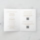 Elegant all in one folded wedding invitation featuring a simple and minimal faux gold design. A classic layout with your names in large lettering for a modern twist to this traditional style invitation. The inside right panel has two QR Codes. Simply add your URL to the template and a QR Code will be generated. If you prefer, you may remove the QR Codes in the design editing tool. This wedding invitation is perfect for a formal wedding.