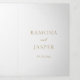 Elegant all in one tri-fold wedding invitation featuring a simple and minimal faux gold design. A classic layout with your names in large lettering for a modern twist to this traditional style invitation. The inside right panel has two QR Codes. Simply add your URL to the template and a QR Code will be generated. If you prefer, you may remove the QR Codes in the design editing tool. This wedding invitation is perfect for a formal wedding.