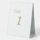This simple gold calligraphy table number tent sign brings an elegant luxury but modern feel to both a minimalist and more traditional or formal wedding or event. The casual calligraphy allows for an antique feel, while the classy neutral design can be combined with any unique aspects of your celebration.