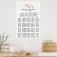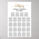 This simple gold calligraphy wedding seating chart poster is perfect for a chic wedding. The classic romantic design features faux gold foil typography and a lovely golden heart. This wedding poster includes enough room for up to 24 tables (240 guests). In addition to the placement of each guest, personalise this sign with the names of the bride and groom and the wedding date.