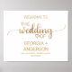 This simple gold calligraphy wedding welcome poster is perfect for a chic wedding. The classic romantic design features faux gold foil typography and a lovely golden heart. Customize the poster with the name of the bride and groom, and the date and location of the wedding.