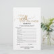 This simple gold calligraphy "what's in your purse" game is perfect for a chic bridal shower. The front of the game card features "how well do you know the bride", and the back of the card features "what's in your purse". The classic romantic design features faux gold foil typography and a lovely golden heart. Personalise the front of the card with the brides name and bridal shower date.