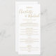 Simple gold elegant signature script wedding menu card featuring signature style names, this modern menu card can be personalised with your information in chic gold lettering. Designed by Thisisnotme©