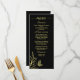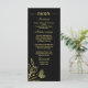 Unique simple wedding menu featuring romantic and elegant gold flowers on black background
