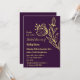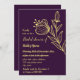 Unique simple bridal shower invitation featuring romantic and elegant gold flowers on purple background