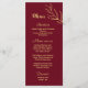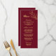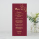 Unique simple wedding menu featuring romantic and elegant gold flowers on burgundy background