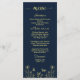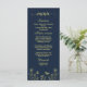 Unique simple wedding menu featuring romantic and elegant gold flowers on navy background