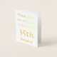 This minimal, loving gold foil birthday greeting card design features a message like "ANameHere, we wish you a wonderful 35th birthday!" on the front, where the name and birthday number can be customised. The inside features a personalised birthday message. A birthday card like this could be used when celebrating somebody’s birthday.