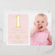A modern birthday party invitation for your little girl featuring portrait of your little girl along side a blush pink rounded oblong on a white background, with the age of your daughter and event details in real gold foil.