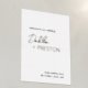 Modern style gold foil wedding welcome sign featuring a simple and minimal design with the bride's name in an elegant script and the groom's name in a contemporary sans serif font. Below in the lower right corner are your event details. All text is printed with real foil. A minimalist design that goes well with any style of wedding.