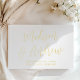 Add a personalised touch to your wedding ceremony with this Simple Gold Foil Script guest book. The design features your names displayed in an elegant gold foil calligraphy script with your wedding date and location shown below on a white background. Add your custom text to the spine of the gold foil guest book. The back of the guest book features your horizontal engagement photo.