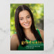 This simple, minimalist graduation card features a gold foil typography overlay and a full photo. The word "Graduate" is written in lowercase letters in bold, trendy gold foil lettering, with the graduate's name and graduation year below. The typography design is placed in the lower right corner and overlays a full photo with vertical orientation. The back of the graduation card includes a template to add graduation party details.