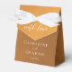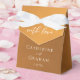 This rustic gold wedding favour box features elegant white typography With Love on an understated earth tone gradient. Simple light orange and brown hues follow the current fall trends for a bohemian wedding this autumn. Complete the understated look with your minimalist script over the colour fade.