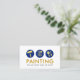An all white cover features gold painting tools and brushes placed in blue circles. Just below this lies the oversize business name "PAINTING" and the contact details.