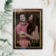 A simple full bleed wedding photo save the date card featuring foil pressed minimal frame and editable type on the front. The back has a wedding website. Click the edit button to customise this design.