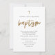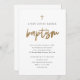 Simple Gold Script Religious Baptism Invitation with minimal gold foil cross . Click the edit button to customise this design with your details.