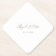 Wedding Paper Coasters. Couple Names & Date. Simple. Gold Script font. Diamond Shape.
