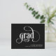 A simple and stylish graduation announcement featuring grad logo text in a modern script typeface with the class year. A text template is included to personalise with your text that includes the graduates class year, name, school and additional information on the reverse side of the card. This versatile announcement card is suitable for any type of school or university graduation and any gender graduate.