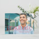 This one-photo graduation announcement features a full-frame photo with the word "graduate" in red in a simple but stylish lowercase type. This modern card also features room for the graduate's name, school and year or other details you want to share. The back is a matching red with a subtle confetti or graduation cap pattern. The colour can be adjusted by clicking "customise further."