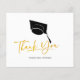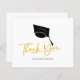 Easily customise this elegant modern graduation budget thank you card with your name by clicking the "Personalise" button. This card features a graduation cap and a modern script that says "Thank you" in faux gold that is set.