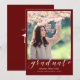 Send your family and friends a unique personalised photo graduation announcement to wow them. This modern template design features your photo framed in red and below in white script is the word "Graduate" with your name, school and year to personalise. The back of the card has an image of a white grad cap and "Class of 20XX" in simple white typography. Designed by artist ©Susan Coffey.