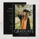Simple Graduation Stylish Modern Grad Party Photo Announcement Party Invitation features your favourite grad photo above the elegant yet simple text "Graduate" in modern calligraphy script typography. On the reverse add your graduation party details. Available as a physical paper graduation announcement invitation and as a downloadable, shareable instant digital download. Designed by Evco Studio www.zazzle.com/store/evcostudio