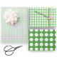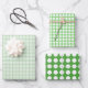 This simple green and white polka dots pattern has three sheets of a classic polka dot design with different colour combinations. Use them to wrap coordinating gift boxes for a baby shower, birthday, or any other event where you want a clean and simple look.