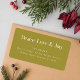 Send your holiday mail in style with these elegant Christmas return address labels featuring a warm olive background and refined typography that reads “Peace, Love & Joy.” Perfect for adding a thoughtful touch to cards, gifts, and festive correspondence, these holiday mailing labels for Christmas combine timeless simplicity with a modern minimalist feel. Personalise them with your family name and address to create a polished, custom finish.