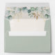 This design features a botanical greenery eucalyptus green, a nature foliage leaves leaf garden,5x7 a7 envelope size, a return address printed back flap, a stylish trendy typography font, a sage green greenery flowers floral, a simple minimalist minimal design, an elegant garden bouquet, a matching coordinating envelopes, a green colour floral envelopes