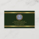 A dark green cover is accentuated by two faux gold lines that border the top and bottom rim of the card.