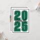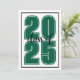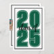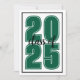 Timeless Vertical Graduation Announcement & Party Invitation. The front features the year "2025" in large bold font, with "class of" elegantly written in script across the middle. This version showcases a classic green, black, and white colour scheme, but all colours—including the year, script text, and frame—can be customised to match school colours or personal preferences. The background colour can also be adjusted for a personalised touch.