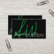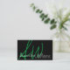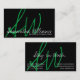 Make a fantastic first impression with these simple green initials professional business cards. These business cards have a solid black background. They feature a handwriting script font with your initials in green in the background. On the front, there is space for your name and title. On the back, it says "Stay in touch" and allows space for six lines of contact information such a phone number, cell phone number, fax number, email address, social media handles, your website or any other contact method your business connections use. This is a generic business card style that can be used for nearly any type of business such as consultants, graphic designers, entrepreneurs, real estate agents, cosmetologists, hair stylists, lawyers and thousands of other professions and job titles.