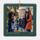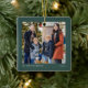Simple green knit frame one photo Christmas Ceramic Ornament