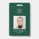 This simple green vertical employee ID card features modern typography and simple design. Personalise it with your photo, logo, name, job title, and custom text.