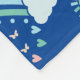 "Simple Green Rainbow Boho Outline on Blue" design on a cosy fleece blanket, perfect for a nursery or child's room. This blanket features an adorable pattern with rainbows, sun, clouds, hearts, and butterflies in soft green hues against a dark blue background. The boho-inspired design adds a whimsical and inviting touch, making it a charming and snug addition to any child's space.