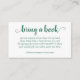 BOOK REQUEST CARD: Minimalist flourish calligraphy "bring a book" baby shower or gender reveal party enclosure card featuring a fun, casual hand-lettered script. The classic design includes a modern handlettered quote typography overlay along with a poem. For other colours or matching products, please visit the JustFharryn Zazzle store, or contact the designer, c/o Fharryn@yahoo.com All rights reserved. #bohochic #zazzlemade