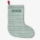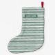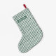 Modern Christmas stocking features a simple green and white striped print with name. Please view this holiday collection for coordinating items.