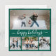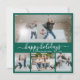 Simple Green White 4 Photo Collage Happy Holiday Card