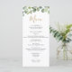 Designed to coordinate with our Mixed Greenery wedding collection, this customizable Menu features watercolor greenery foliage with gold and gray text and a gold frame on the back. To make advanced changes, go to "Click to customize further" option under Personalize this template.