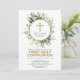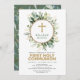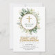 Celebrate your child's first holy communion with this elegant botanical themed invitation featuring elegant watercolour eucalyptus greenery in green and gold