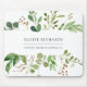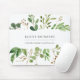 This trendy yet elegant mouse pad features a green botanical frame with elegant watercolor leaves.