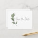 An elegant minimal calligraphy design on white with a classy text pairing and greenery. Add your names and wedding date to the back.