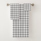 A classic and traditional gingham towel set with grey and white checks pattern.