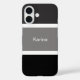 You'll love this modern, simple and stylish cell phone case with a grey, black and white stripe pattern. Large black and grey stripes with small white stripes. Personalised with your name printed in a white text.