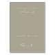 The simplicity of the design allows it to effortlessly complement any wedding theme or decor style, making it a versatile choice for your special day. The crisp typography and sleek design create a modern and sophisticated look, setting the tone for a memorable wedding celebration. Designed to coordinate with for the «Sophia» Wedding Invitation Collection. To change details, click «Details». To move the text or change the size, font, or colour, click «Edit using Design Tool». View the collection link on this page to see all of the matching items in this beautiful design.