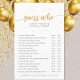 Simple Guess Who white with faux gold splatters baby shower game. You can personalise this game with the guest of honour's name and shower date along with 15 statements/questions. Your baby shower guests will guess who said each statement....mum or dad.