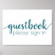Simple horizontal "Guestbook: Please Sign In" shower, party, or reception table signage featuring a fun, casual hand-lettered script. The classic design includes a modern handlettered quote typography overlay. The lovely font with a customizable background color makes it easy to fit any theme. For other colors or matching products, please visit the JustFharryn Zazzle store, or contact the designer, c/o fharryn@yahoo.com All rights reserved. #zazzlemade